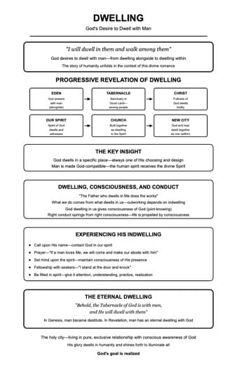 Matters of fundamental importance, such as the dwelling of God with man, appear as recurring themes in the scriptures. These metaphors become spiritual reality as we understand them —not in a literal sense, but in the sense in which they were written.
